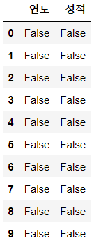 True가 결측치라는 것이고 False는 결측치가 아니라는 것입니다.