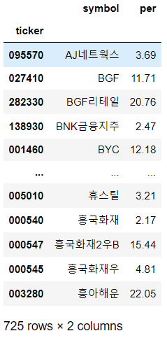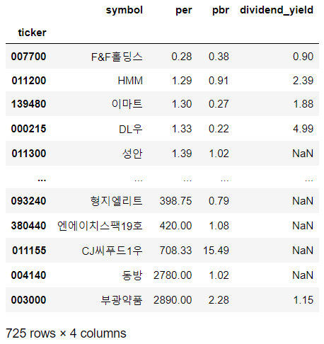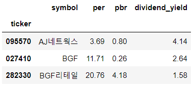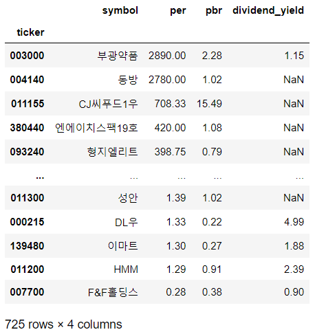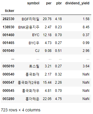df.drop(["pbr", "dividend_yield"], axis=1)