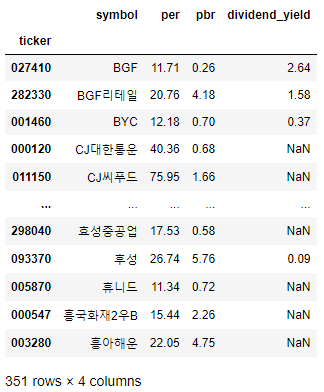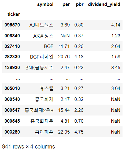 df.drop(["pbr", "dividend_yield"], axis=1)