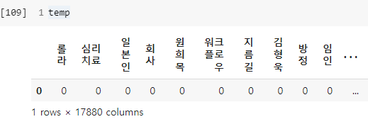 # 학습한 모델에 있는 형태소 데이터만 추출, 없는 경우 0