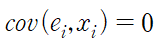 x값으로 오차항을 예측할 수 없다는 것은 둘 사이의 상관관계가 0, 즉 공분산이 0이라는 말과 같습니다.