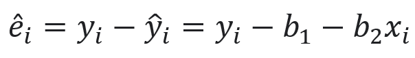 관측값들을 위의 식에 대입하면 단순 선형회귀의 모수를 추정한 추정값을 구할 수 있습니다.